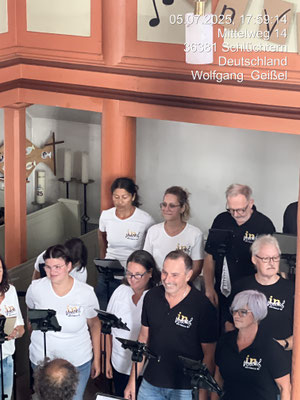Chorprobe und Singen, mit Katja unserer Stellvertretende Dirigentin im DGH und in der Kirche 2024